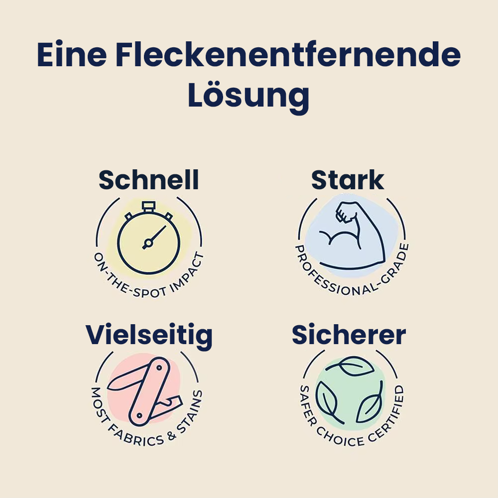 Ergebnisse können je nach Fleckentyp, Material und Einwirkzeit variieren.